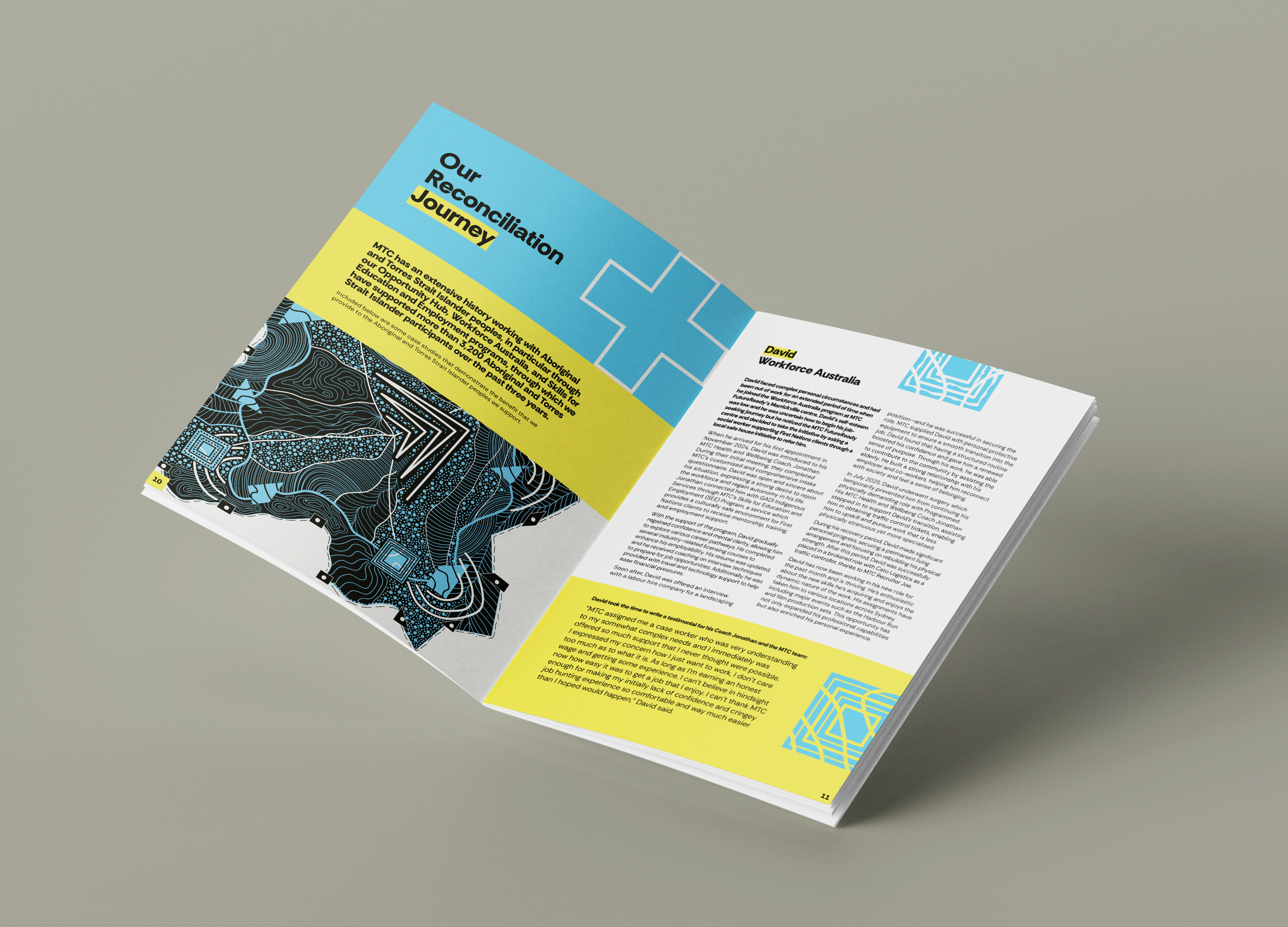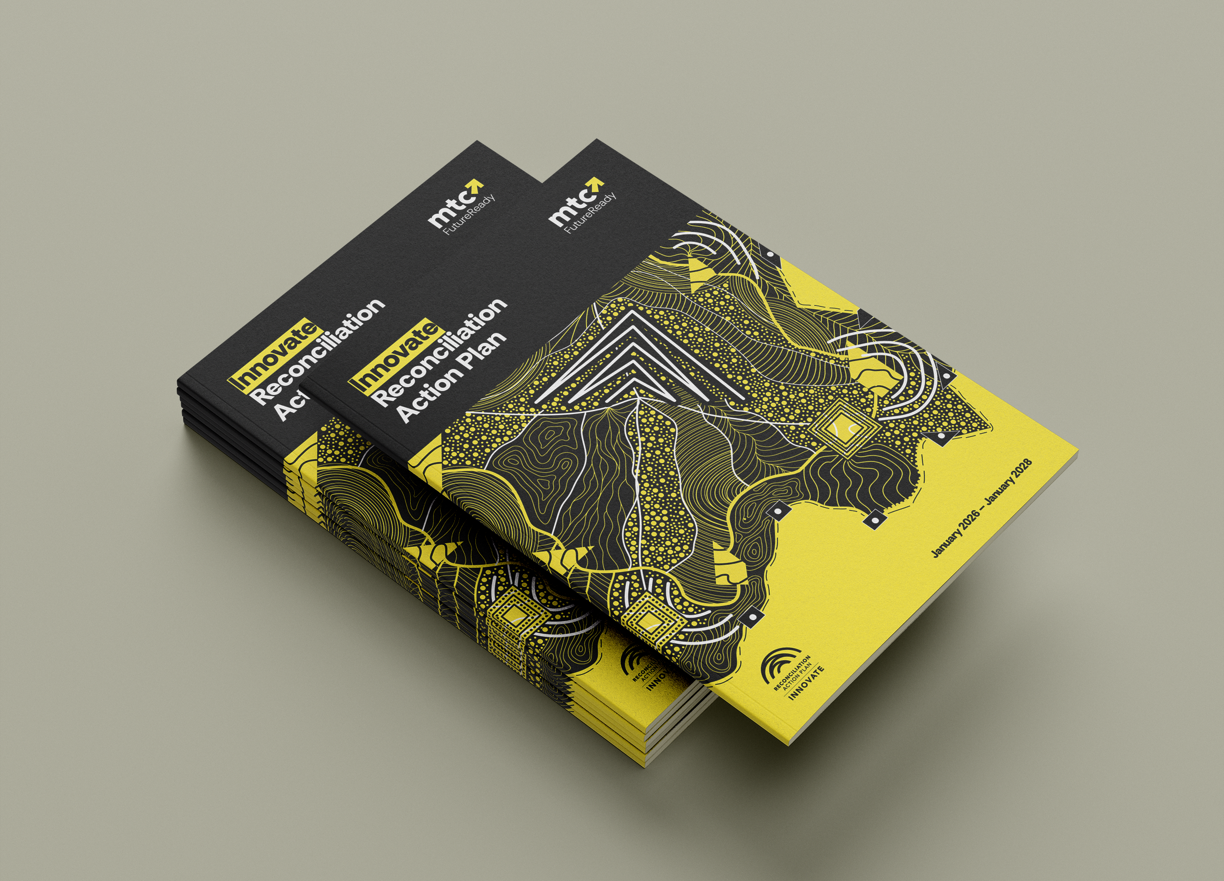 Gilimbaa was delighted to work with the team to create a new motif artwork for its Innovate Reconciliation Action Plan (RAP) and design/layout the RAP document. The artwork, ‘Walking Together Towards Reconciliation’ was created by David Williams for this purpose.